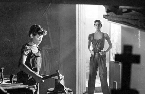 娯楽の核は残したメキシコ時代のブニュエルの諸作品と較べれば、本編や「ナサリン」はより根源的で、彼の代表的欲求により従って作られたものと言えるだろう。冒頭の解説--NY、ロンドン、パリの景観が映り、全世界で少年非行が社会問題に云々と入る--など煽情めくが、後はひたすら冷徹にメキシコシティのスラムの現状が語られる。ペドロは兄貴分のハイボの影響を受けて共に盲目の大道芸人を襲うが、まだそれほどワルでもなく、母親に邪慳にされながら幼い弟妹の面倒を見る健気な少年だ。なのに、ハイボは自分が感化院に入れられたのは彼の密告のせいと思い込む。彼はペドロの親友フリアンを撲殺し、ペドロは口をつぐむと約束させられた。その夜、ペドロは夢をみる。親友の死体、白い鳩、やさしい母……。しかし、母からもらった肉を奪おうとするハイボにペドロはうなされて目覚める。彼は夢で母に誓った通り、真面目に働こうと鍛冶屋の見習いとなるが、そこへもハイボが現われ、ペドロに隠れてナイフを盗み、これが彼のせいとなって感化院送りに。無実のペドロは反抗的だが、進歩的と自負する院長は試みに彼を使いに出す。しかし、またハイボが、預かった金を奪って消えた。追うペドロは遂にハイボの秘密を仲間に明かすが……。救いのない結末に向かって一気呵成に映画は動く。まるで獣のように。疫病神ハイボを少年の母が誘惑する背徳のエロス。そして、悪夢の中、ハイスピードで飛ぶ鶏のシュールなイメージ。安易な解釈を拒絶するハダカの映画には、観る者も心を裸にして触れ合わなければ……。