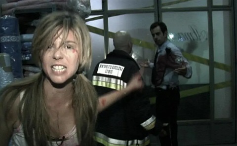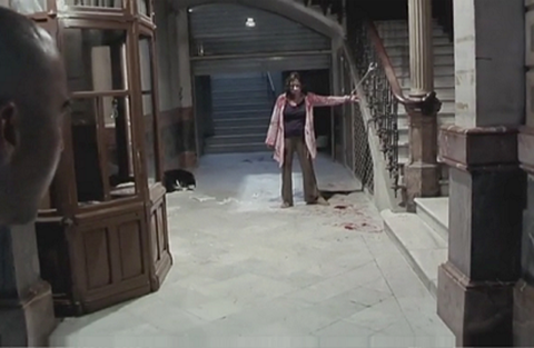 襲われたアレックスは階段から落ち、若い警官が老女を射殺